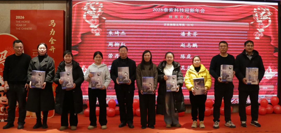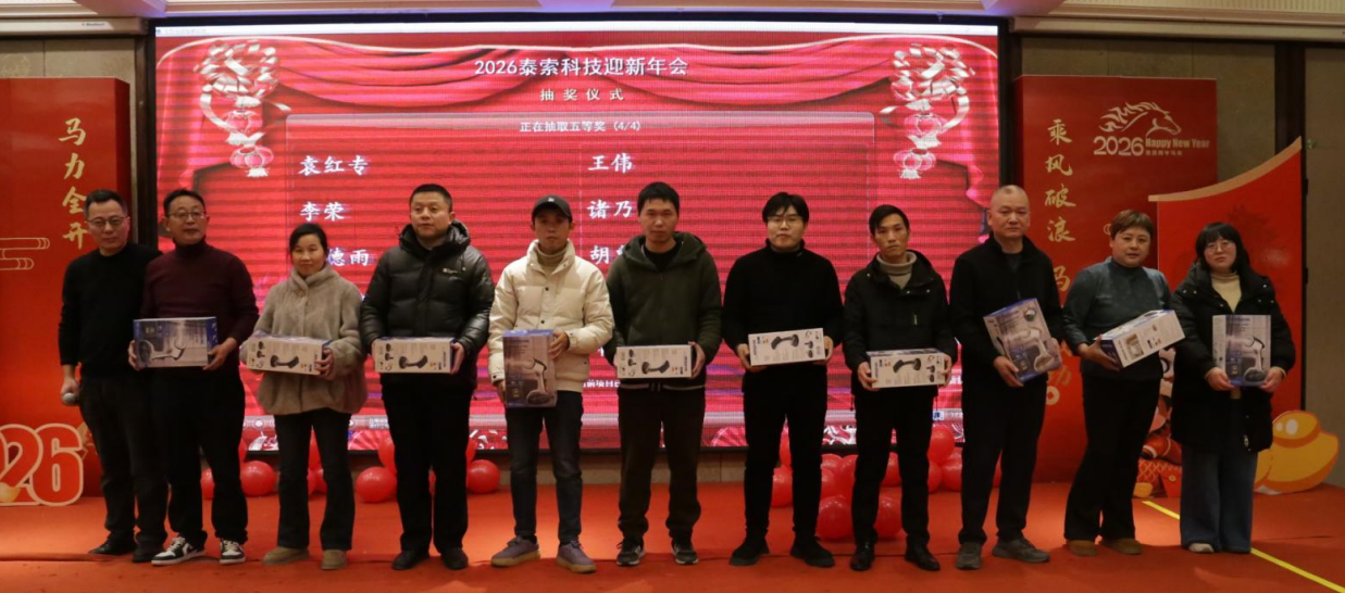 2026年2月8日,浙江泰索科技有限公司"骏启新程·共赢2026"主题年会盛典在余姚石浦大酒店隆重举行。作为专注温度热管理系统30+年高新技术企业、国家级专精特新“小巨人”企业,泰索科技全体员工齐聚一堂,共同回顾2025年的辉煌成就,展望2026年的崭新征程。